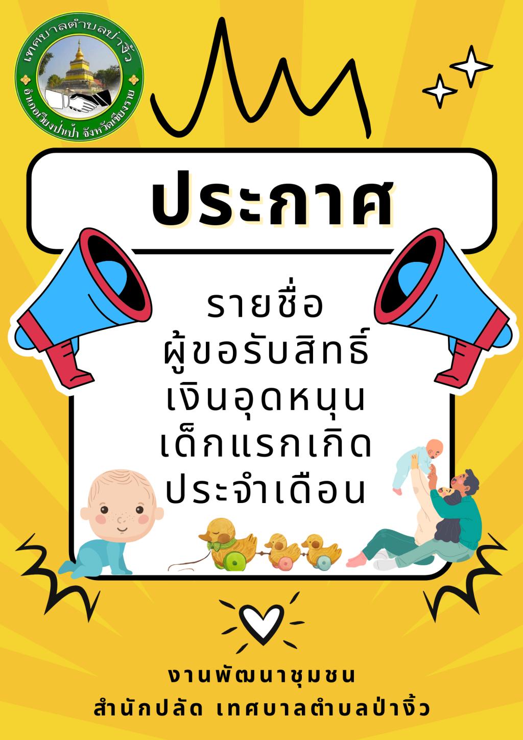 ประกาศรายชื่อผู้ขอรับสิทธิ์เงินอุดหนุนเด็กแรกเกิดประจำเดือนพฤษภาคม 2568 ...