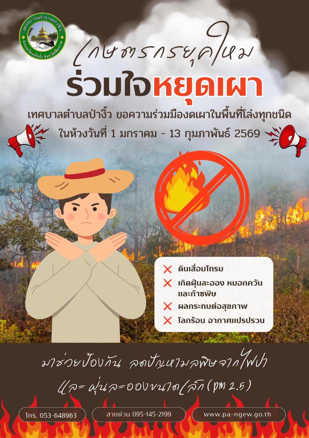 เทศบาลตำบลป่างิ้วขอความร่วมมืองดเผา ห้วงวันที่ 1 มกราคม - 13 กุมภาพันธ์ 2569...